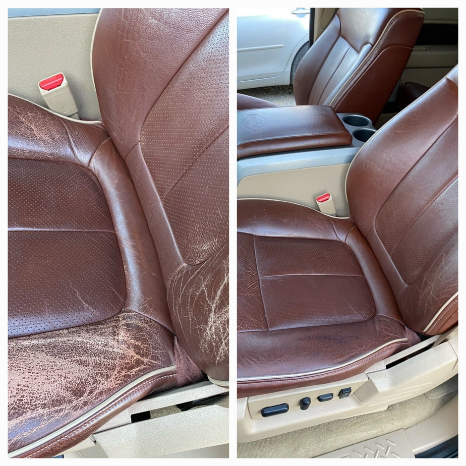 The seats are popping with luster as well as the console and dashboard. Great product for all sorts of leather and pliable.