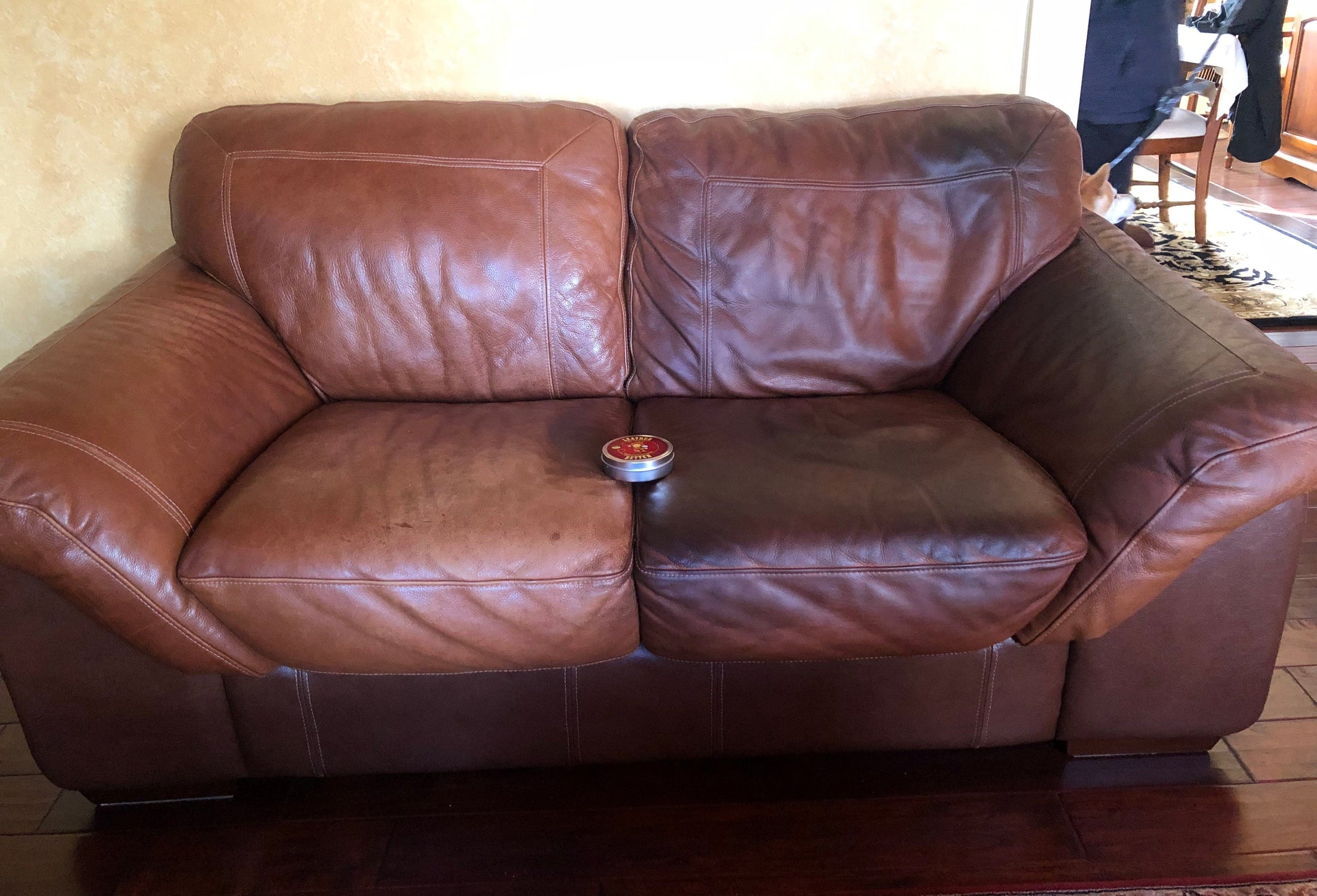 "Our leather ottomans take a beating with our dogs! Leather better has really improved their appearance! Thank you!"